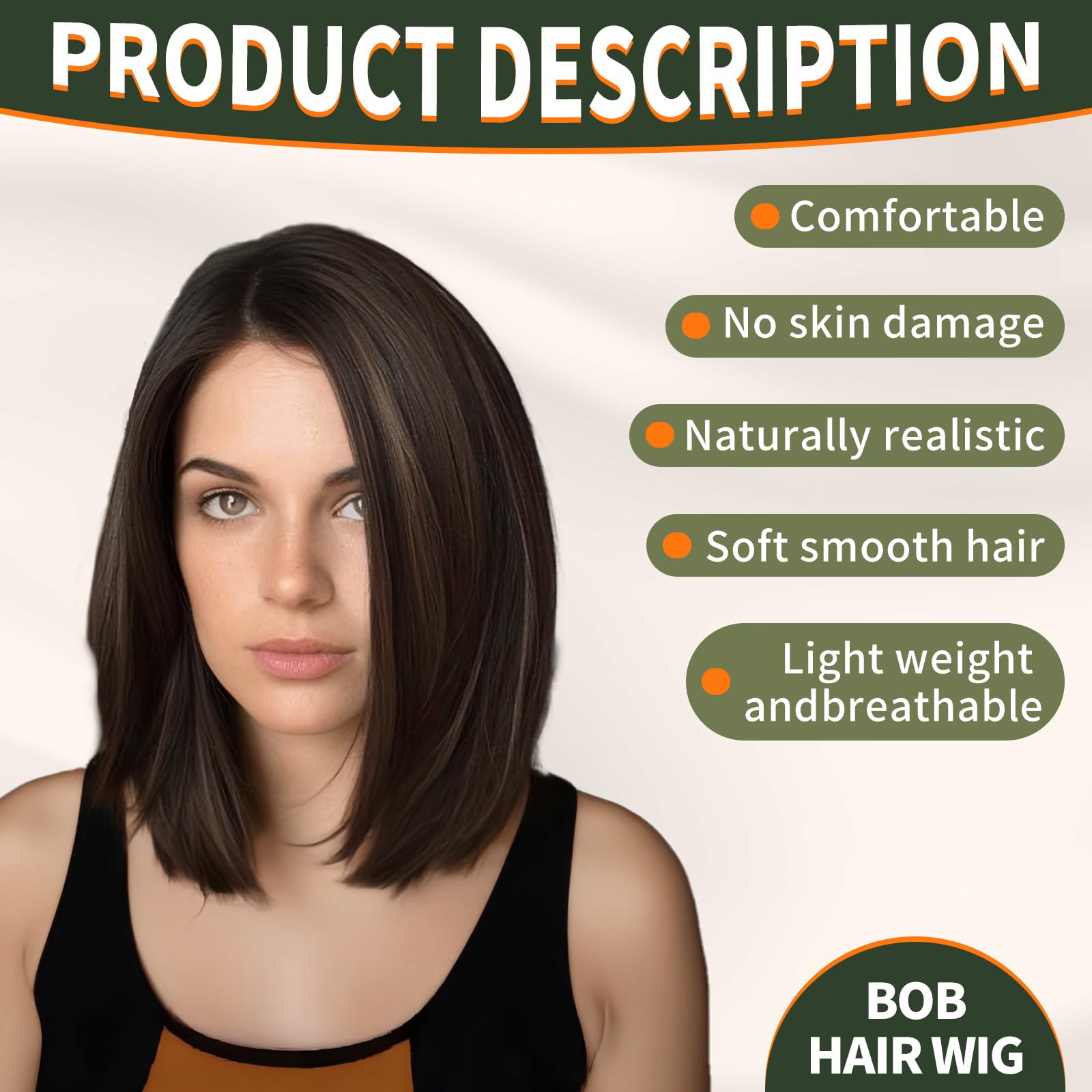 KOME FTL007-4 Natural Brown Highlight Short Bob Wigs,Brown Straight Shoulder Length Wigs for Women,Middle Part Heat Resistant Fibre Synthetic Wig Daily Use