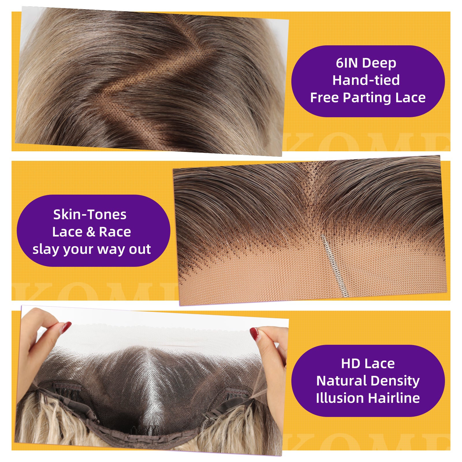 • "3D Baby Hair Tech – Puberty Hairline 2.0 15 micro-hairs per cm² create puberty-soft edges. looking hairlines! Pro tip: Add our root spray for that ‘week 4 touch-up’ natural vibe."